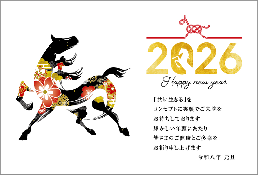 「共に生きる」をコンセプトに、笑顔でご来院をお待ちしております。輝かしい年頭にあたり、皆様のご健康とご対応をお祈り申し上げます。